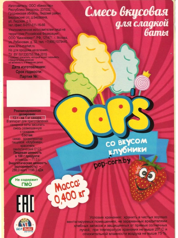 Смесь вкусовая для сладкой ваты «POP’S» со вкусом клубники
