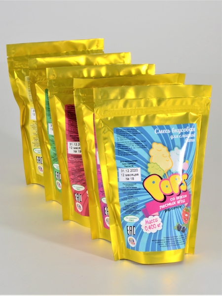 Смесь предназначена для использования с аппаратом для производства сахарной ваты. Подходит для любого оборудования. Разводится в пропорции 13 грамм на один килограмм сахара.