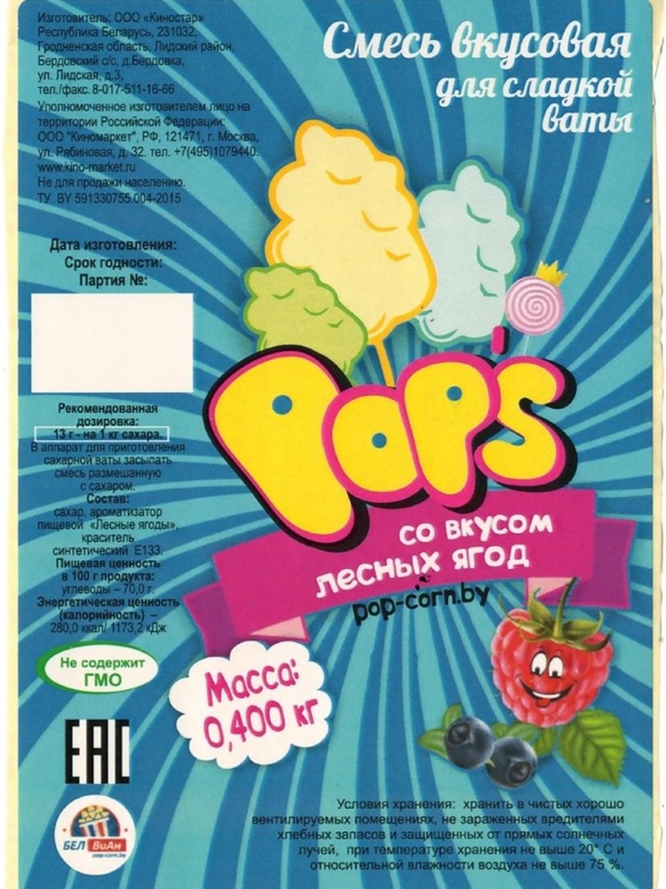 Смесь вкусовая для сладкой ваты «POP’S» со вкусом лесных ягод
